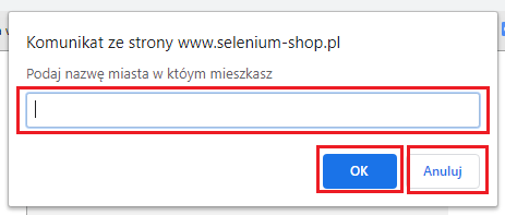 „To jest okno Alert strony www.selenium-shop.pl”