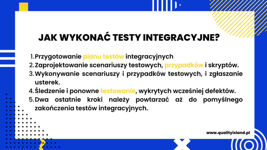 Poniżej przedstawiamy prostą procedurę wykonywania testów integracyjnych, która sprawdzi się niezależnie od strategii testowania oprogramowania (które omówione zostały wcześniej):