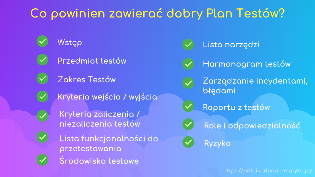 Wygląd oraz sama organizacja dokumentu mogą być różne w każdej firmie, czy projekcie – nie ma jednego właściwego wyglądu takiej dokumentacji. To, jakie informacje, sekcje, punkty, szczegóły zamieścimy w dokumencie, jest sprawą bardzo indywidualną, a wpływ na to może mieć wiele czynników, takich jak: polityka firmy, rodzaj projektu, aplikacji, metodologia pracy, wymagania projektowe, organizacja zespołu itp. Jednak tworząc i przeglądając dziesiątki Test Planów – śmiało mogę wskazać, co powinien zawierać dobry Plan Testów, a czego w nim lepiej nie umieszczać. Poniżej podzielę się z Wami tą wiedzą.