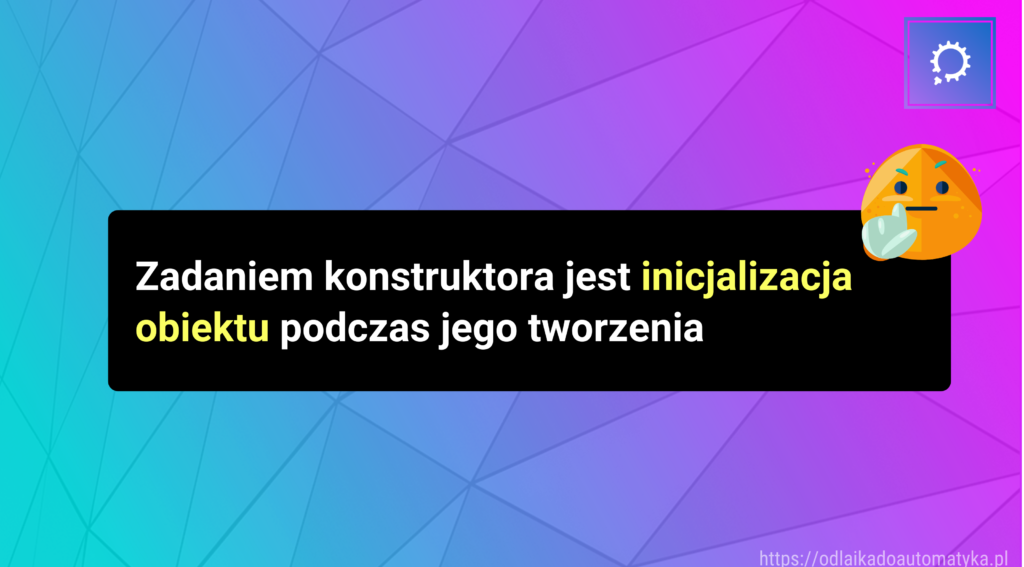 - Zadaniem konstruktora jest inicjalizacja obiektu podczas jego tworzenia.
