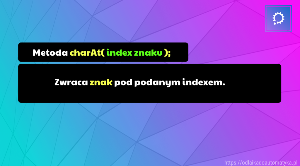 Metoda charAt (index znaku); zawraca znak pod podanym indeksem.