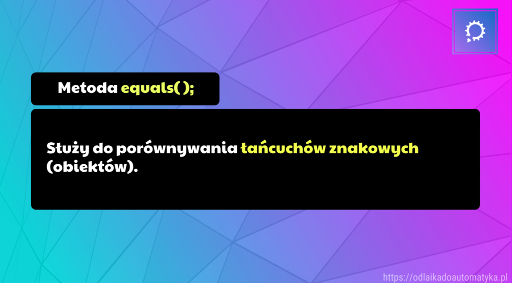 Metoda equals() służy do porównywania łańcuchów znakowych (obiektów).