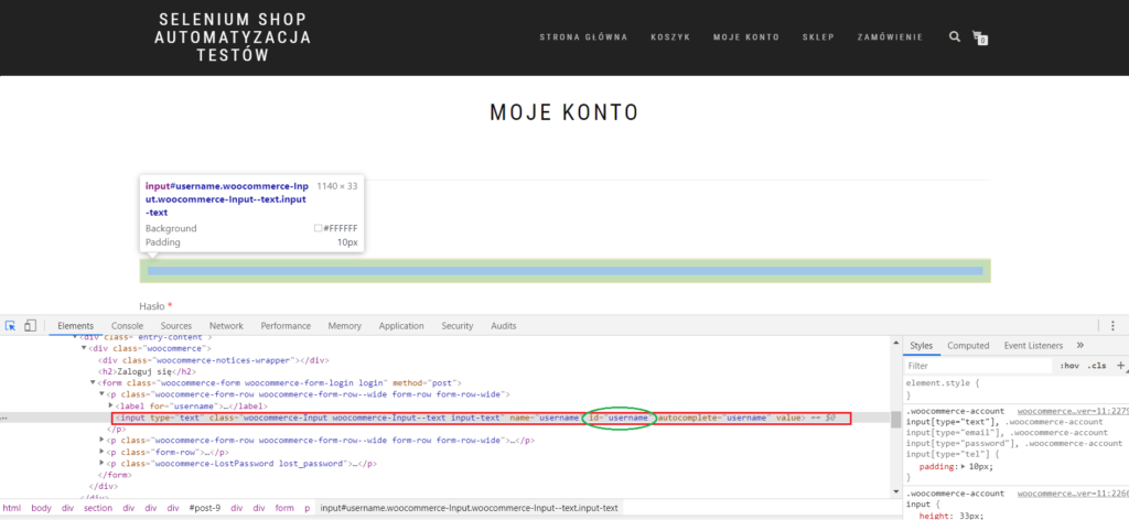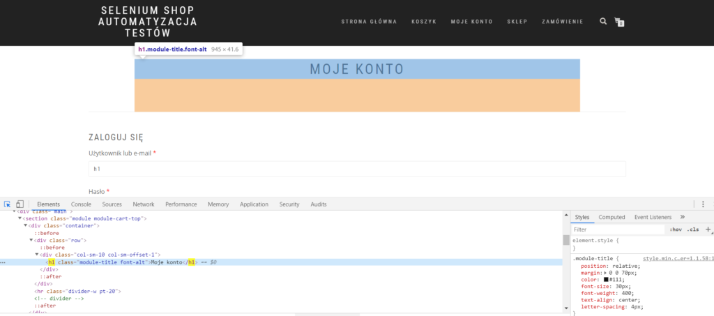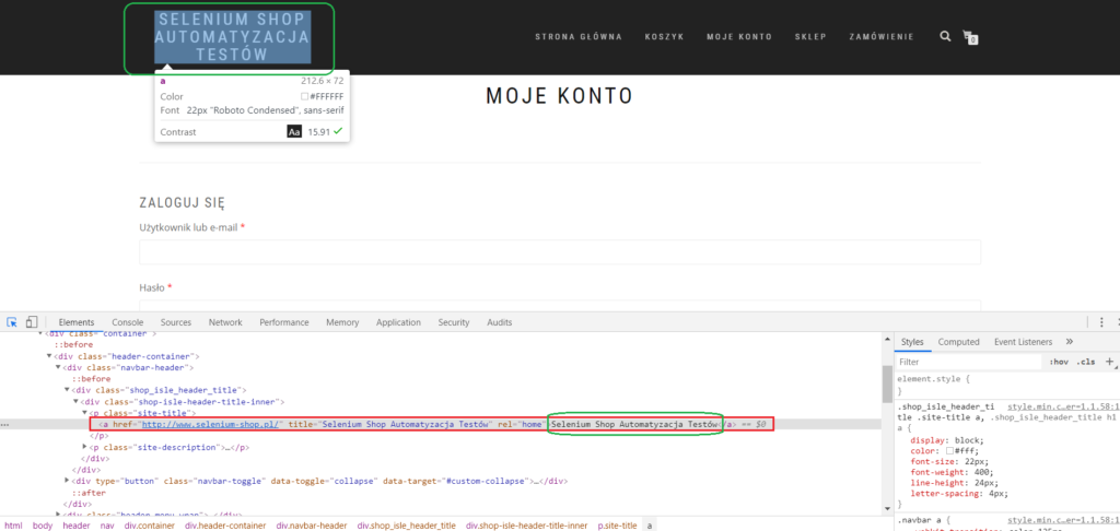 Adres strony: http://www.selenium-shop.pl/moje-konto/