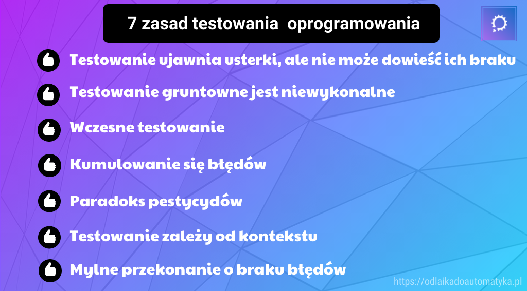 Tych siedem zasad testowania pomaga przygotować i przeprowadzić właściwy proces testowania oprogramowania. Warto myśleć o nich jak o całości i wdrażać je wszystkie na każdym etapie testowania. Stosowanie się do poszczególnych punktów tej listy może pomóc uniknąć wielu problemów – choćby testowanie na wczesnym etapie, które wykryje niezgodność założeń projektu z zadaną specyfikacją, może sprawić, że końcowy produkt faktycznie będzie funkcjonalny. Działanie zgodnie z tymi zasadami jest oczywiste dla testerów, gdyż pozwala zoptymalizować proces testowania, czyniąc go jednocześnie skutecznym.