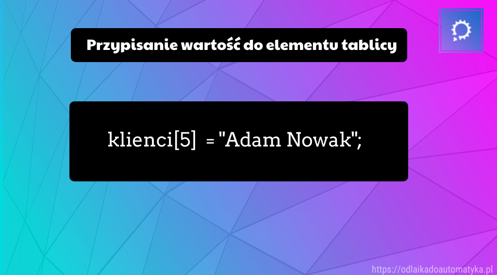 Na przykład: jeśli chcesz przechowywać 100 nazwisko swoich znajomych możesz zadeklarować tablicę przechowującą te nazwiska. Takie rozwiązanie jest bardziej uniwersalne, ponieważ chcąc dodać kolejnego użytkownika, wystarczy dodać nowy element do tablicy, zamiast deklarować kolejną zmienną.