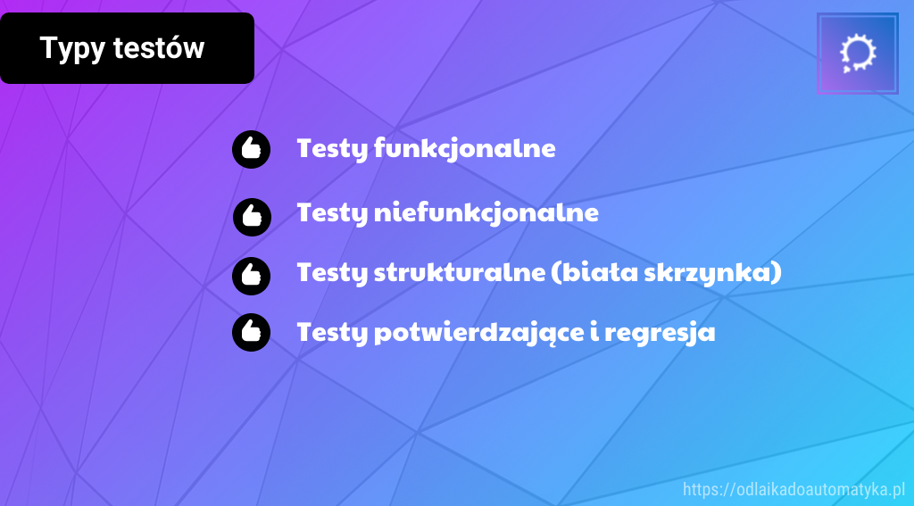 Testowanie oprogramowania to bardzo rozległy obszar branży IT. Testować aplikacje możemy na wiele sposobów, a same testy mogą mieć różne cele. I to właśnie wspomniane cele testowania, definiują typy testów, jakimi możemy poddać oprogramowanie. Jeśli celem testów jest np. zmierzenie wydajności systemu, wówczas wykonamy testy niefunkcjonalne, w skład których wejdą np. testy, wydajnościowe, obciążeniowe, przeciążeniowe. W tym materiale postaram się przedstawić i omówić szczegółowo najważniejsze typy testów. A zatem ruszamy!