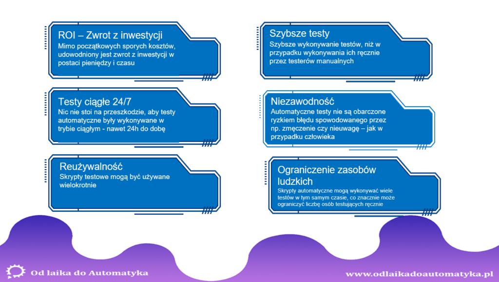 Raz napisane skrypty testów automatycznych, możemy wykorzystywać wielokrotnie zgodnie z naszymi potrzebami.